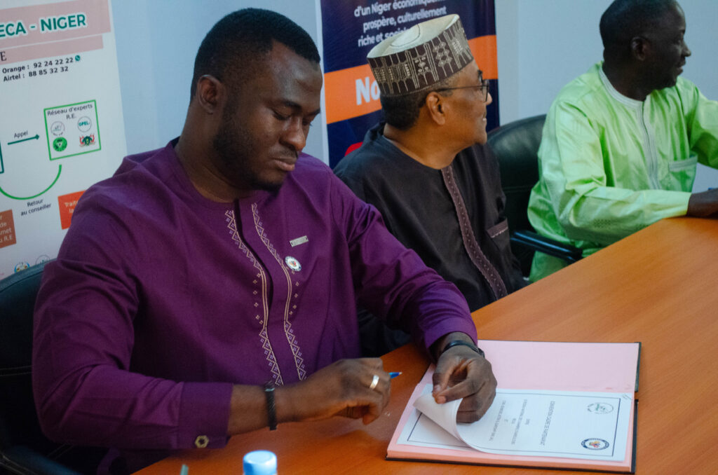 La convention a été paraphée par Tcherno Ali Diallo, Président de JAL, et Seyni Souley, Secrétaire Général du RECA, en présence de Henri Motcho, Président du Conseil d’Administration de JAL, ainsi que de plusieurs membres des deux structures. Cette mobilisation témoigne de l’importance accordée à cette collaboration et de la volonté commune de créer un impact durable.